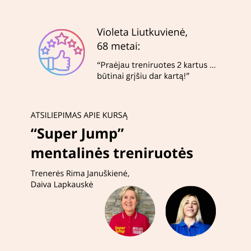 Super Jump saviugdos treniruotės - tai naujas požiūris į pedagogiką, leidžiantis pasiekti rezultatų daug greičiau ir veiksmingiau nei įprastos metodikos.