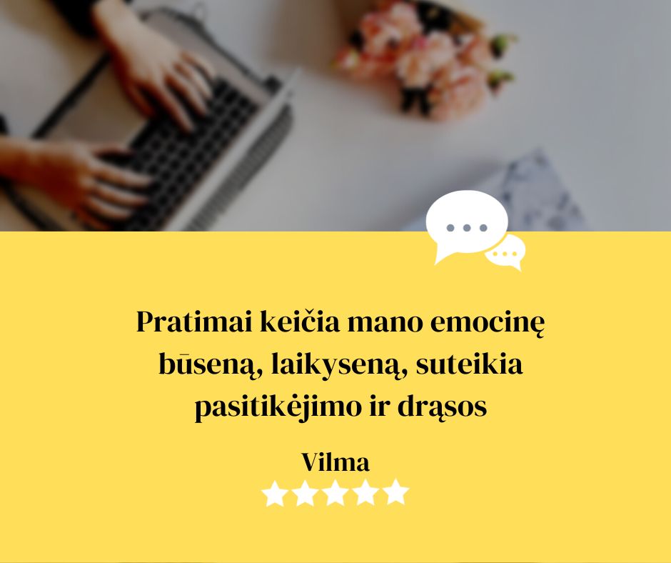 Pasiekiami rezultatai: Mano kursų dalyviai mato rezultatus, kuriais dalinasi su kitais dalyviais. Tai realūs pagerėjimai įvairiausiose (dažniausiais skausmingose) gyvenimo srityse.